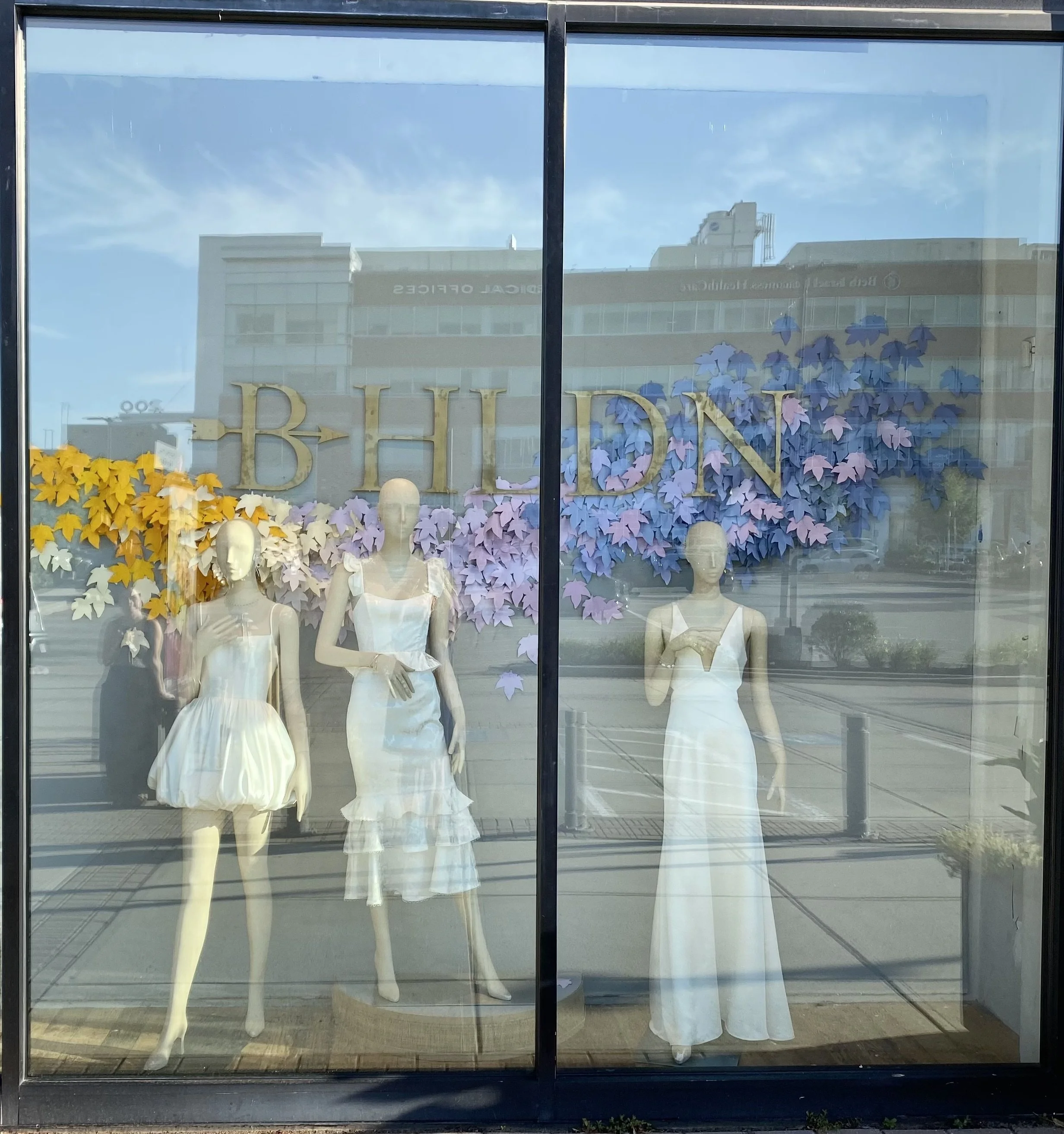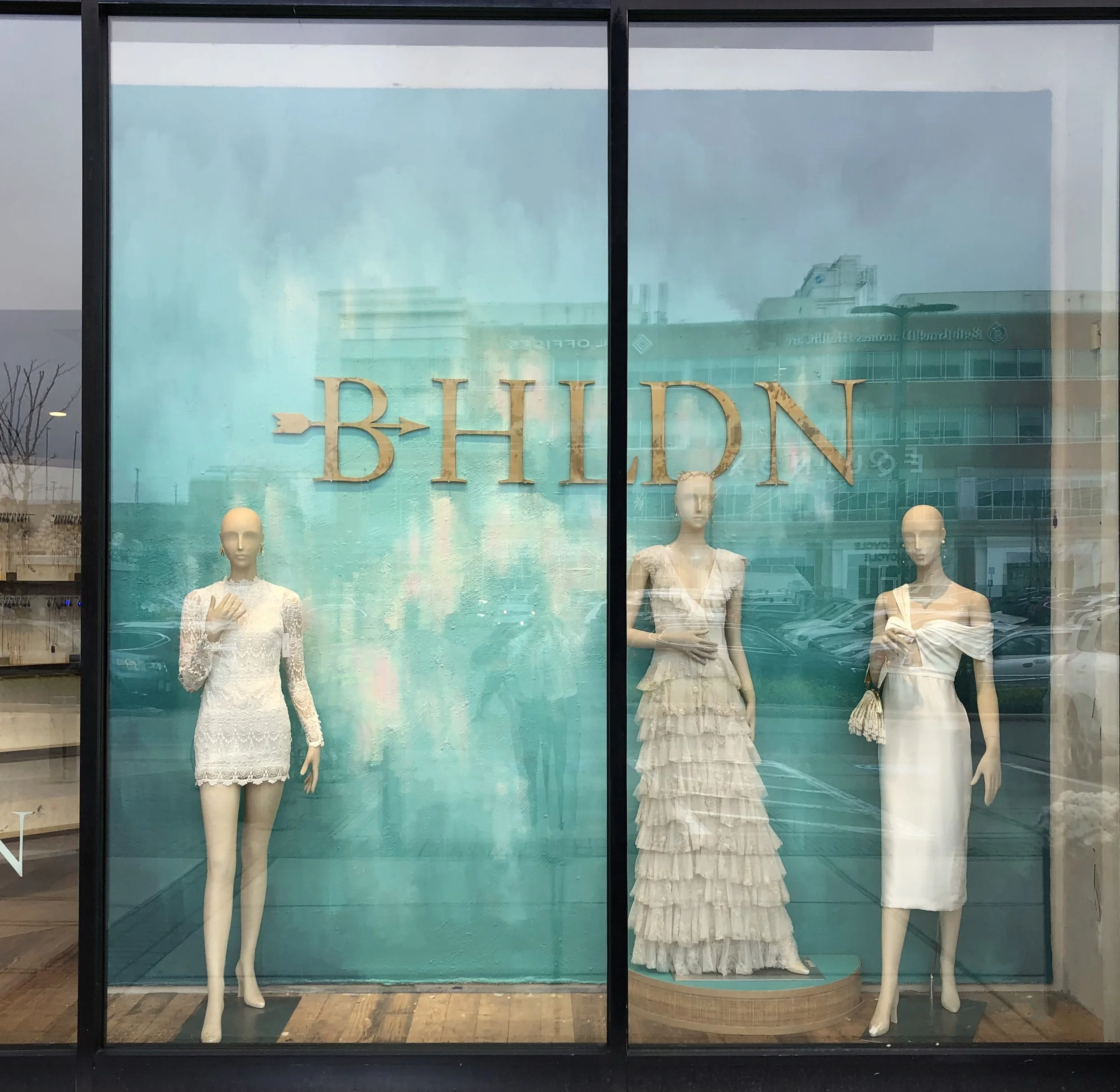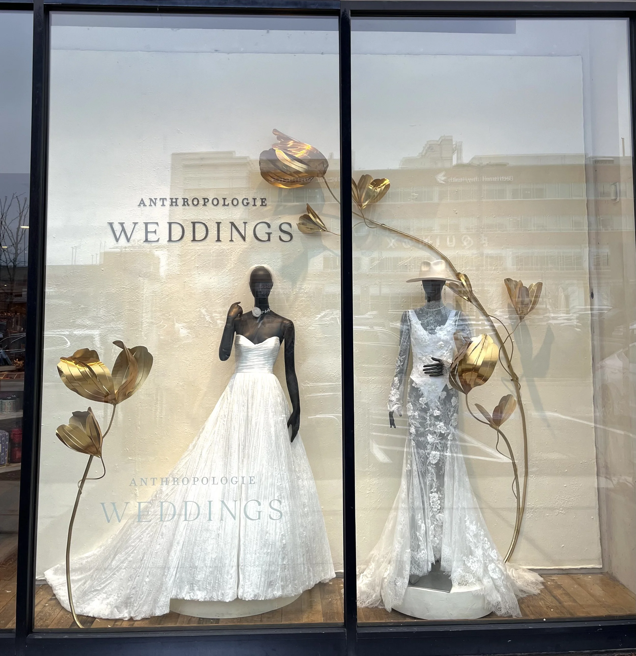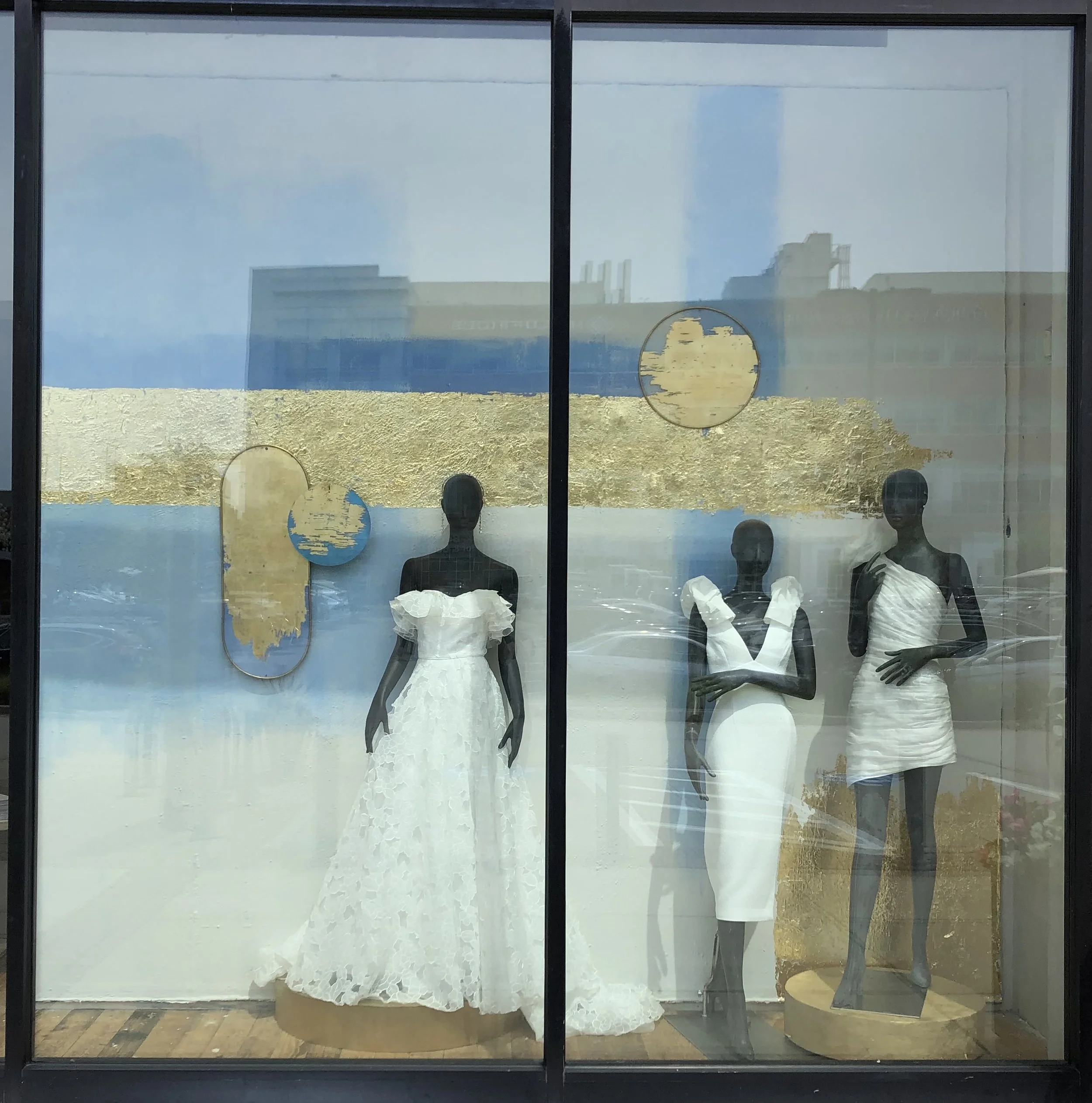 Handmade Anthropologie Window Display. 8’ x 3’ x 12’ ft. Latex paint, gold leaf, aluminum, brass, wood, and plexi glass. 2023.
